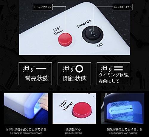 원본상품명: VERY100 ジェルネイル クラフトレジン ネイルライト UVライト 36W ジェル タイマ付き ホワイト
