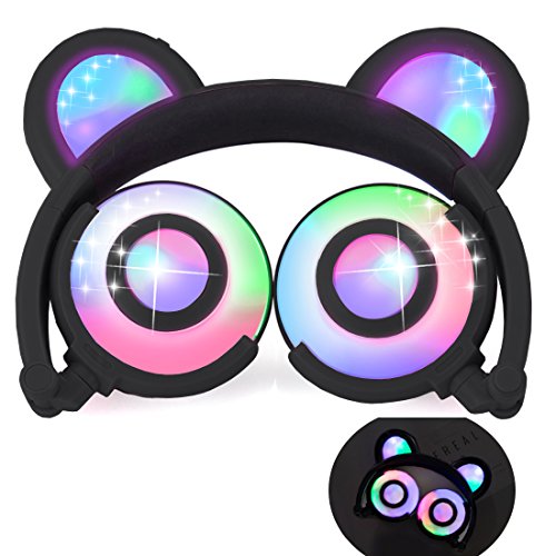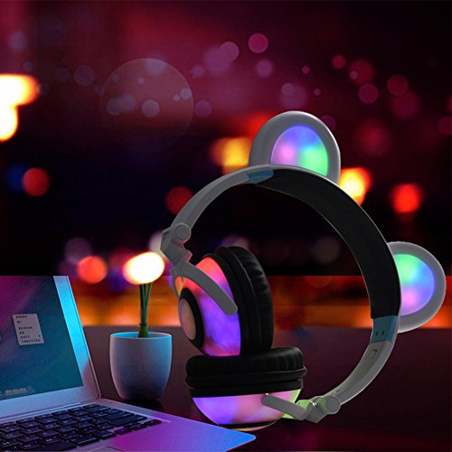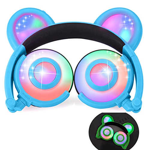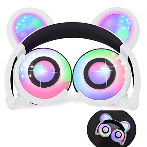♫ 2017 HOT VERSION: Cute bear ear headphones,newest and best selling foldable headband computer headphone with soft headband. LED flash light up to 30+ hours. Adjustable Headband to fit different sized heads. Excellent sound quality with super bass stereo. Over-the-ear cushioning for noise reduction and a secure fit. On/Off switch located behind right "Bear ear",right modes: on,blinking and off.