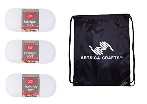 Bundle Includes 3-Pack of Red Heart Fashion Soft Yarn Soft White E845-4600 with 1 Artsiga Crafts Project Bag