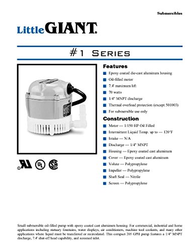 Little Giant 501003 1 115 Volt 205 GPH Oil-Filled Small Submersible Pump