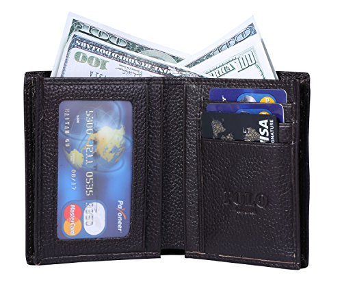 -. Feature : SAFETY & P.R.IVACY: Tested & Approved by Independent Test Lab. Our wallets are equipped with advanced unique military grade proP.R.Ietary blocking material , which blocks RFID signals and protects the valuable P.R.Ivate information stored on RFID chips from unauthorized scans. Tested for 13.56 MHz Frequency in which the credit cards operate. Also tested on HID i-Class 125KHz Proximity Cards, offering complete RFID signal blockage. / HIGH-QUALITY MATERIAL: Made of Italian import top grain leather which is soft and durable.The lining was made of polyester, smooth and durable. / MULTI-POSITION STORAGE: Classic Style- 1 ID Card Window, 5 card slots, 2 money pocket, 1 zipper pocket; Vertical Style- 1 ID Card Window, 6 card slots, 2 money pocket, 1 zipper pocket. / EXQUISITE 3D EMOBOSSING DESIGN :Use the lastst emobossing technology, every wallet upper leather with elegant 3D emobossing check. Its ultra-stylish, make a style statement out of your pocket.This classic style design will bring a lot of fantasy to your daily life. / AMAZING GIFT FOR EVERYONE: Buy a leather wallet in a beautiful package. 100% Top genuine leather.Original POLO Clothing and Accessories designed from Italy.Perfect for men who prefer a simple classic style and fine natural leather will love the product.