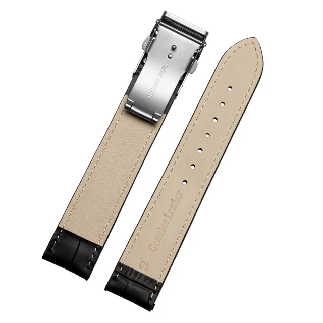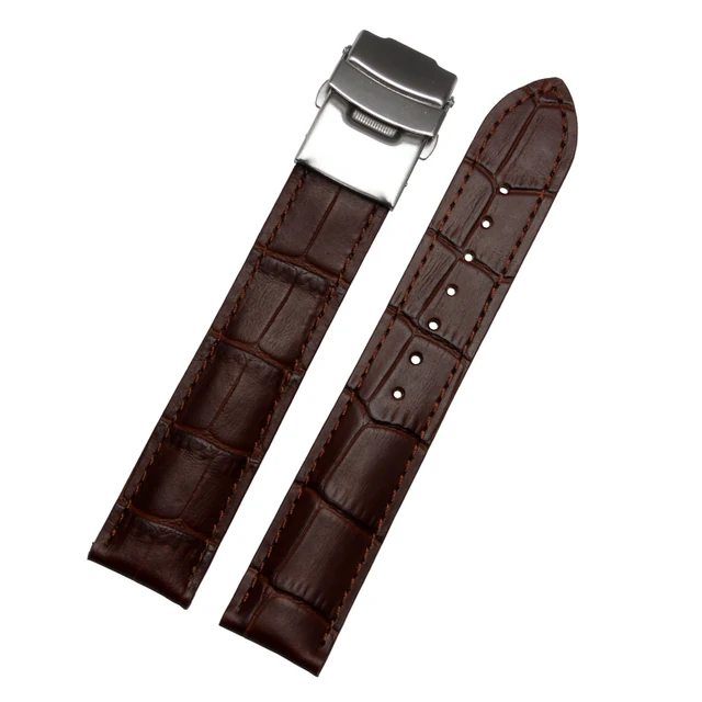 [해외] 18 미리메터 19 미리메터 20 미리메터 22 미리메터 품질 정품 가죽 손목 더블 프레스 남성 여성 검은 갈색 시계 스트랩