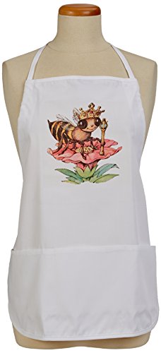 3dRose apr_3306_2 Bee The Queen Medium Length Apron with Pouch Pockets, 22 by 24-Inch
