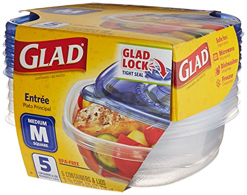 Glad Gladware Entree Plastic Square Containers with Lids, 25 Ounce, 5 Count (Pack of 1)