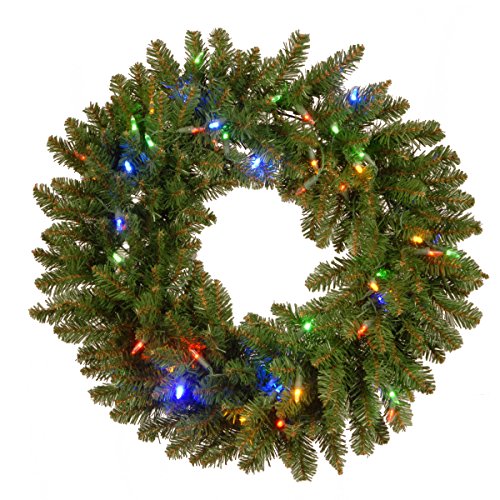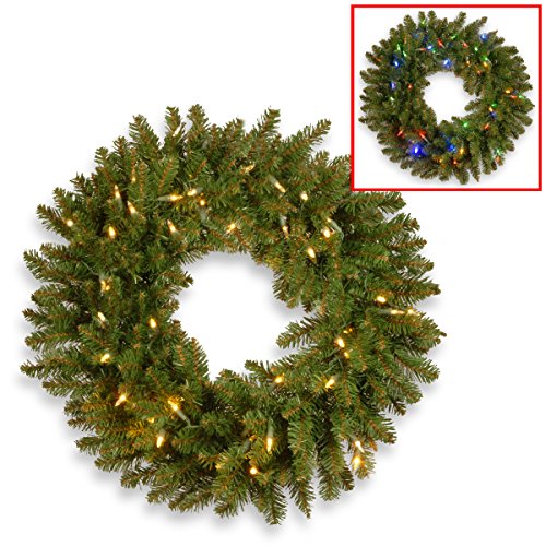 National Tree 30 Inch Kingswood Fir Wreath with 100 Battery Operated Dual LED Lights with Timer (KW7-300D-30WB1)