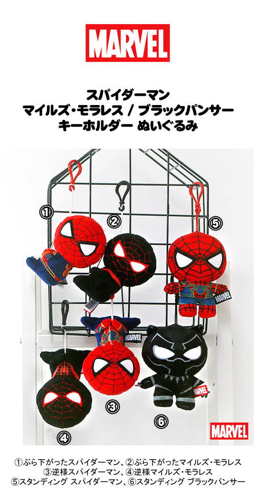 商品名:スバイダーマン / マイルズ・モラレス / ブラックパンサー キーホルダー ぬいぐるみ