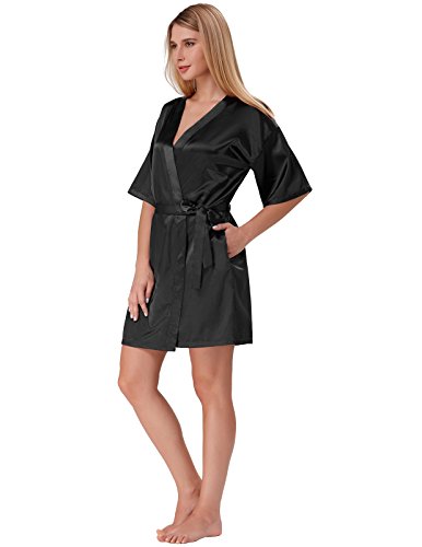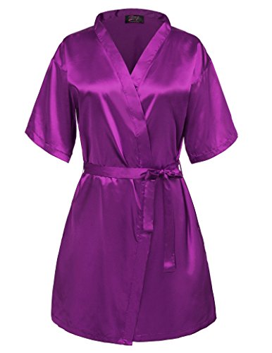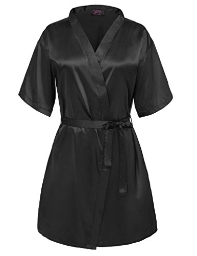 About Robe Zexxxy Women Kimono Robe Solid Color Satin Short Sleepwear with Pocket ZE0051 Features: Mid-thigh length, half sleeve, adjustable sash, inside tie and seam pockets
