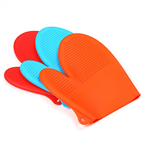 - MATERIAL - High-quality silicone material, safe and non-toxic, heat resistant to 260° C (500° F), excellent insulation, can be a great protection of your hands. Thick material, sharp objects are not easy to pierce our oven mitts.