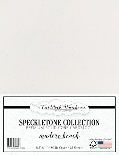 MADERO BEACH WHITE SPECKLETONE Recycled Cardstock 8.5" x 11" - PREMIUM 80 LB. COVER - 25 Sheets from Cardstock Warehouse