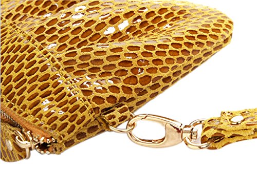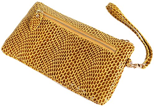 -. Brand : Chrysansmile -. Department : womens -. Feature : Using high quality leather as material and sequins is attached on the surface. / The inside of the cloth is polyester, no any smell / Hardware uses the high quality material / Zipper is durability, it will not fade / There are 2 large cash positions,1 zipper bag,1 card positions -. ProductGroup : Apparel -. ProductTypeName : LAGE -. Title : Womens Perforated Double Layer Sequins Genuine Leather Argyle Pattern Zip Top Pouch Chain Clutch Lady Handbag