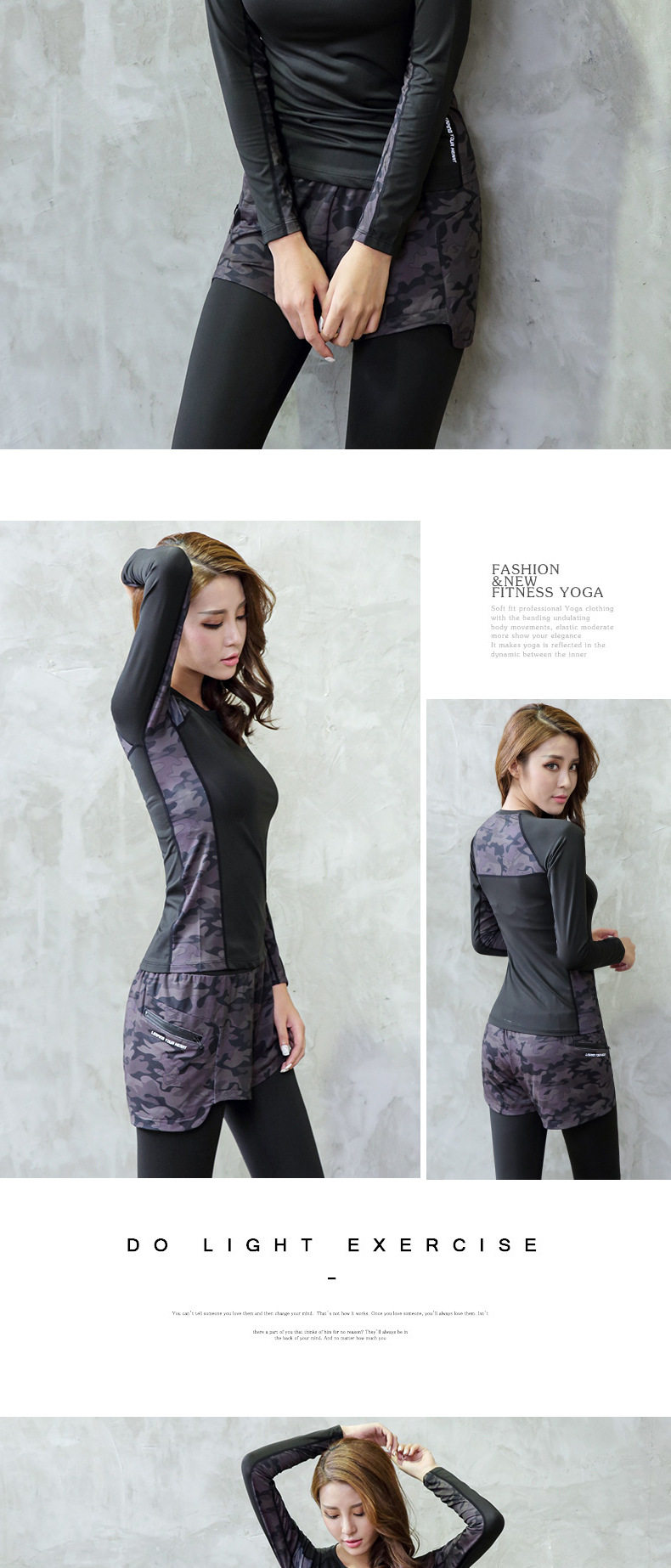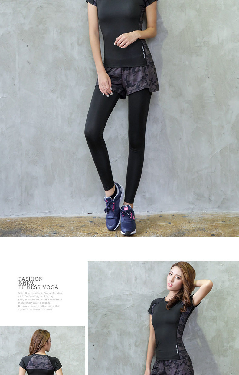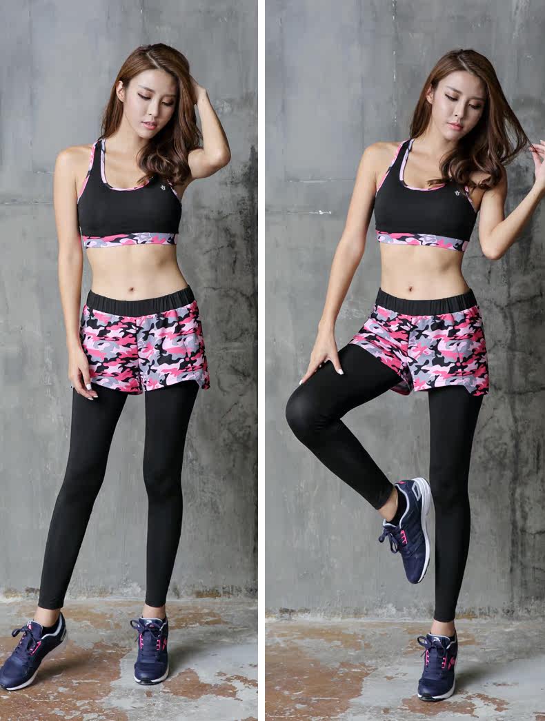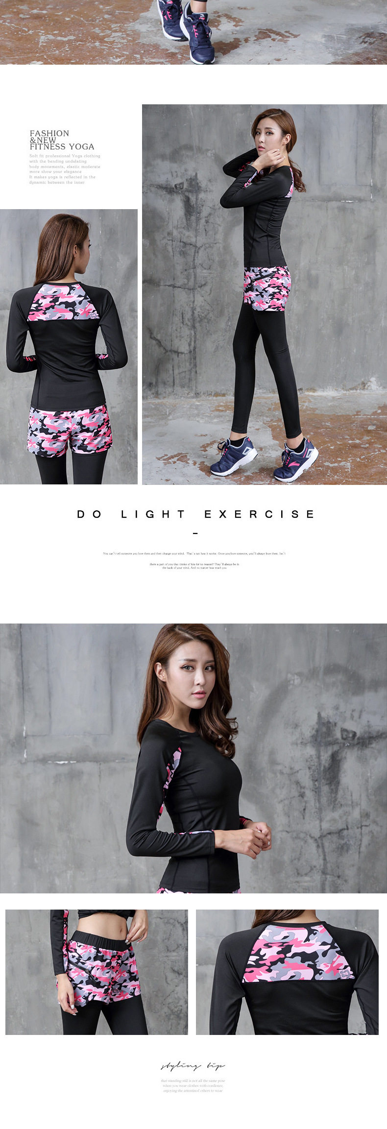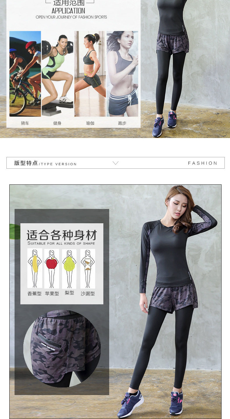 韩国健身服运动套装女瑜伽服三件套秋冬季迷彩速干假两件长裤跑步