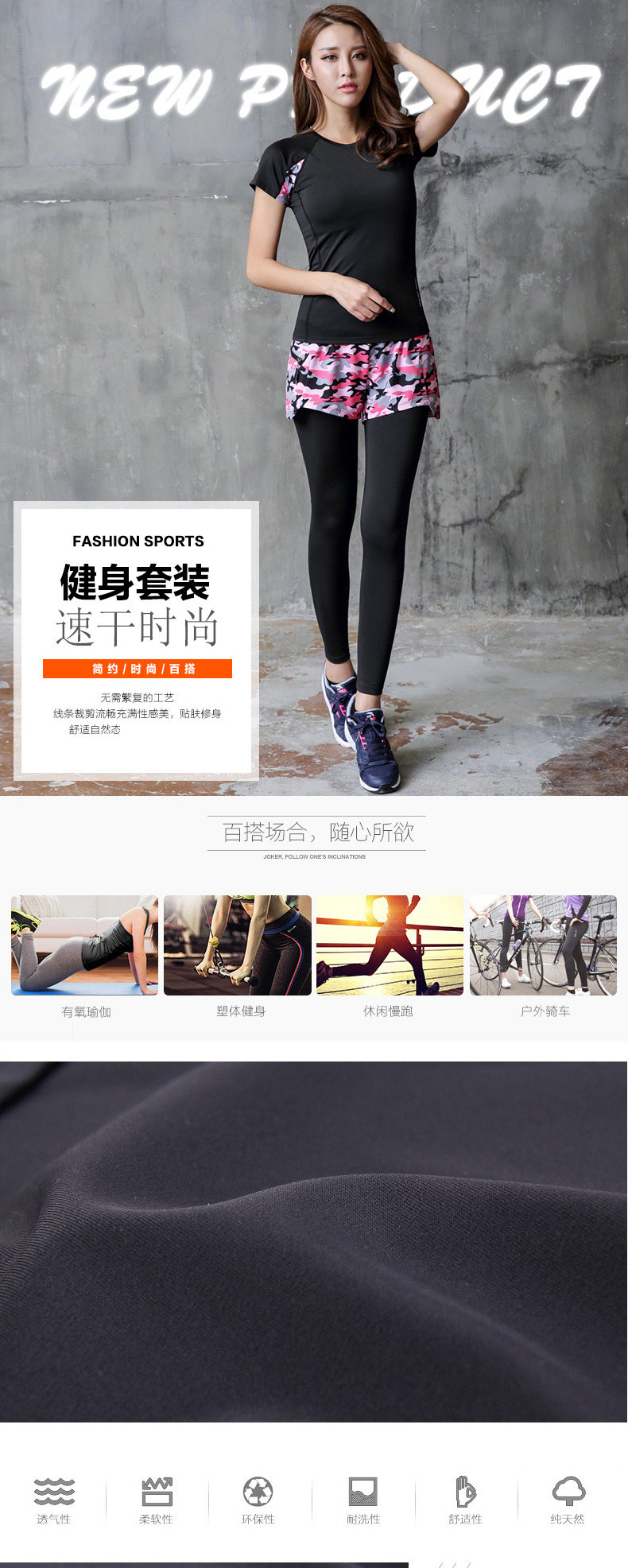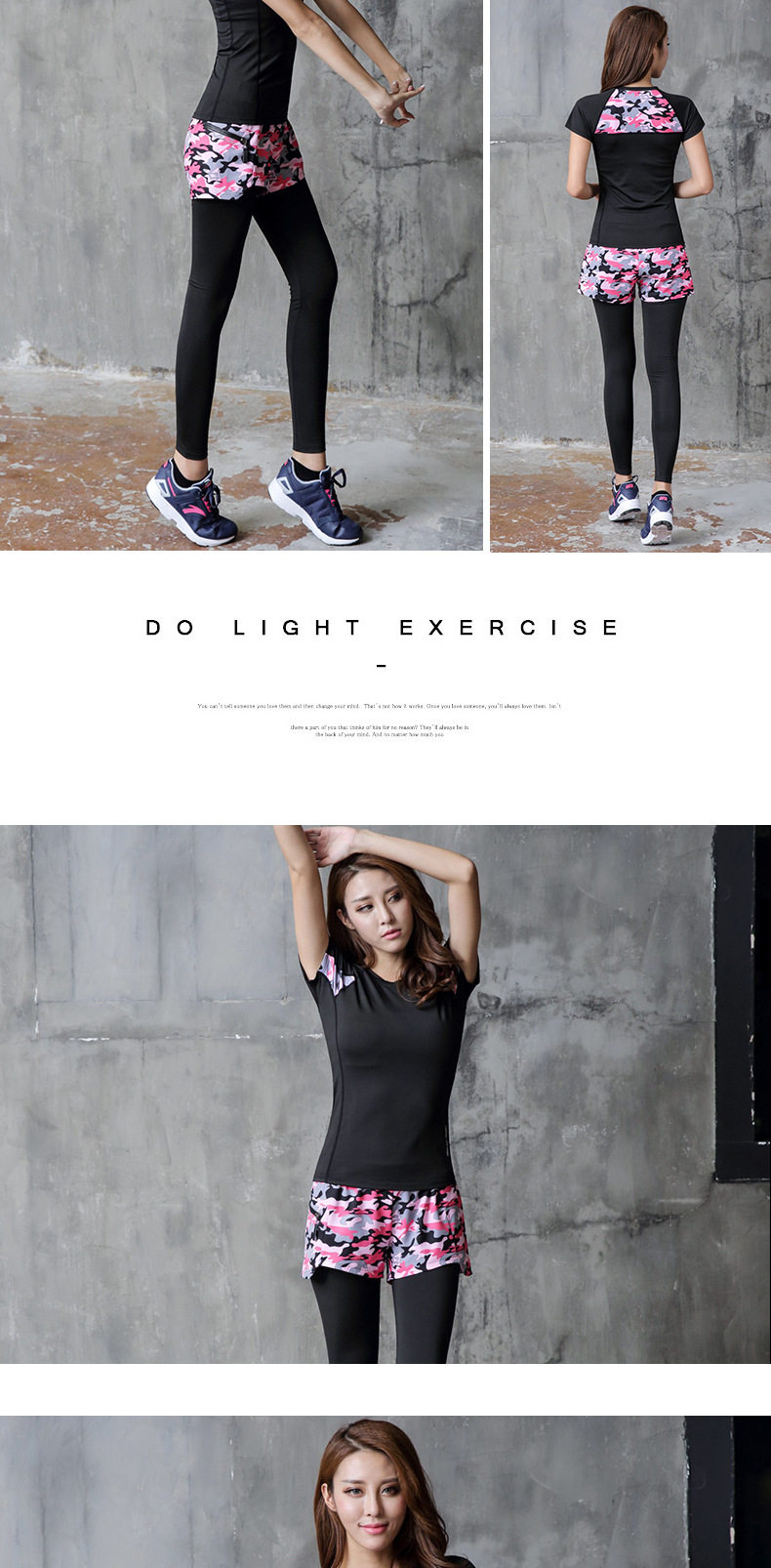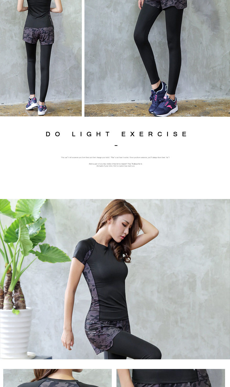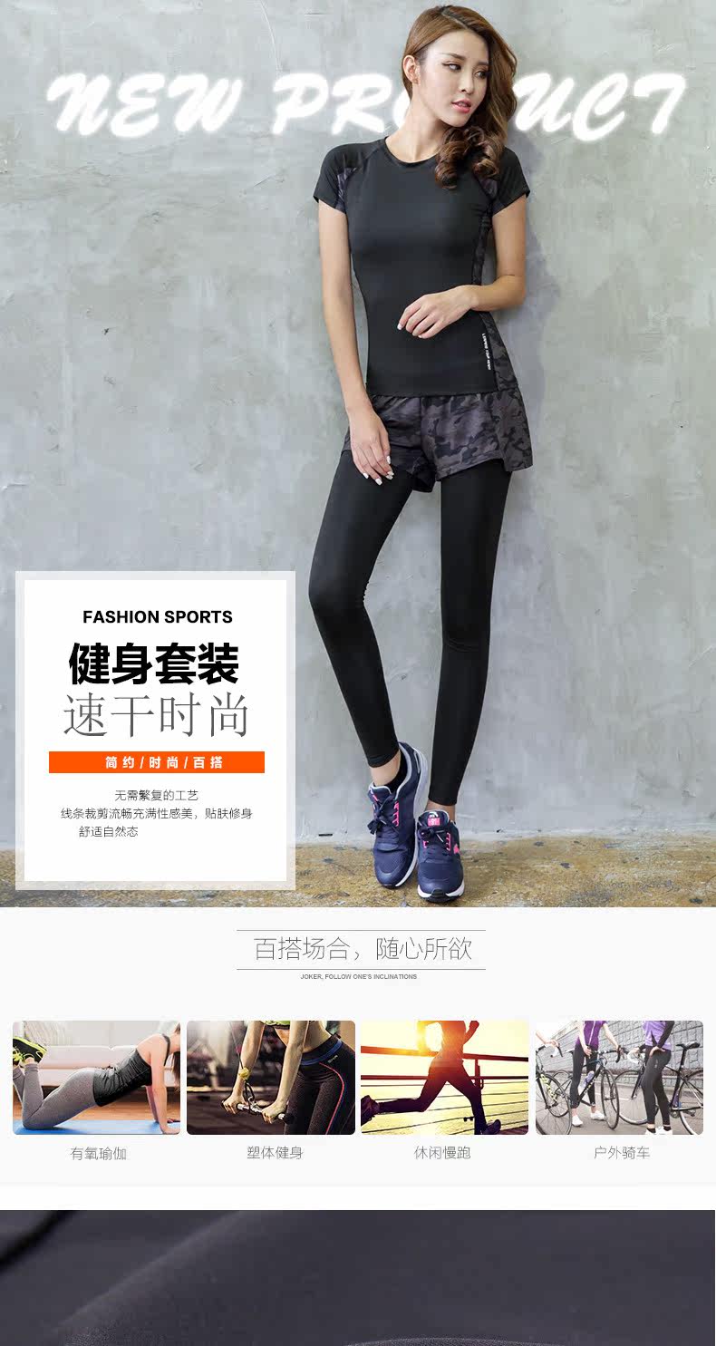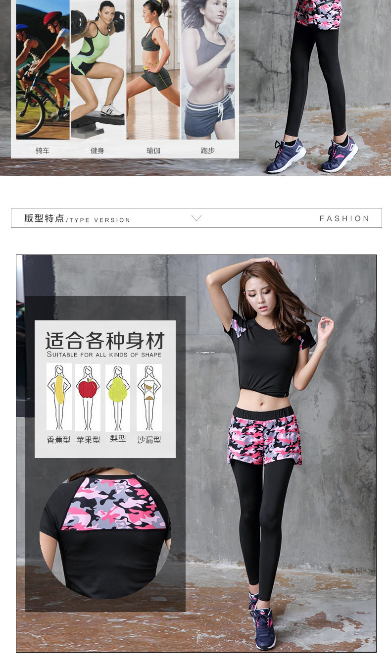 韩国健身服运动套装女瑜伽服三件套秋冬季迷彩速干假两件长裤跑步