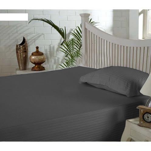 -. Title : Scala Hotel Design Thread Count 650 Egyptian Cotton Bottom Sheets California King Fitted bed Sheets only Striped Deep Pocket 12 Inches Gray