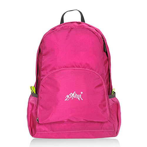 -. Feature : ROOM SAVING - The backpack can be self contained in its own pouch which can be pressed to 1" thick, 7.5"(H) *9" (W), only 1/3 of the open backpack. That is useful when you carry on suitcase with limited space, free your hands in travel or at shopping centers etc. / LIGHT WEIGHT, WATER RESISTANT AND TEAR RESISTANT - The thickening nylon fabric makes a maximum 40lbs loading capacity, while the bag is lightweight, it weights only 220g less than a smartphone. The breathable air mesh strap is specially solid to avoid tearing. Use water resistant fabric. / EASY TO USE- Open the zipper bag, unfold and expand the pack with only 10 seconds. Refer to the photo left for more step by step details how to do this. / LARGE CAPACITY - Volume of 25L, there are one 6.8" * 5.5" pouch in a 12.5"*15.7" main compartment to hold convieniences, like keys, smart phone, wallet etc., one 7.5" *9" front folding pouch to contain tickets, camera etc., and two water holders. / PRACTICAL AND THOUGHTFUL DESIGN - The covered zipper is designed for protect your stuff from theft. The refective tape on both sides of the bag for security in night. The folding pouch can be hung on other backpack by the hanging hook on the top.