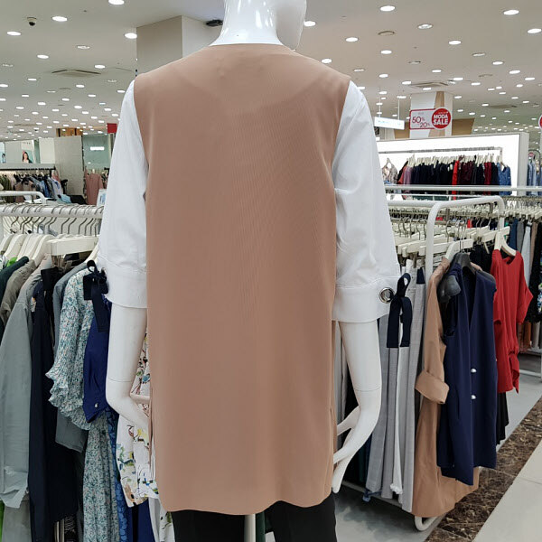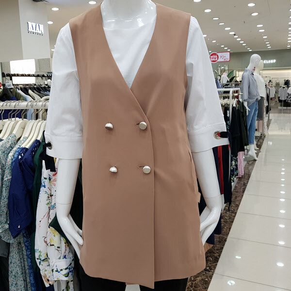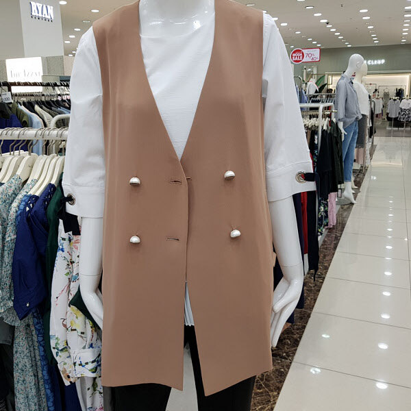 베이직한디자인에 버튼이포인트인 베스트입니다.쉬폰원피스 . 티셔츠.어디에도 연출이가능하십니다.