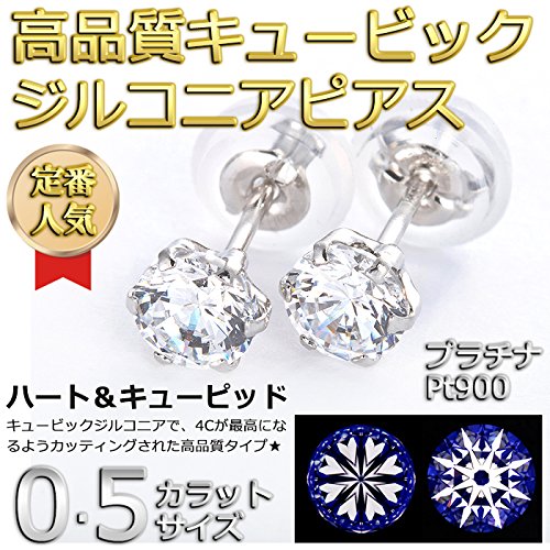 -. Title : 宝石の森 ピアス スーパーキュービックジルコニア プラチナ Pt900 H&C 0.5ctサイズ シリコン製ダブルロックキャッチ シンプル