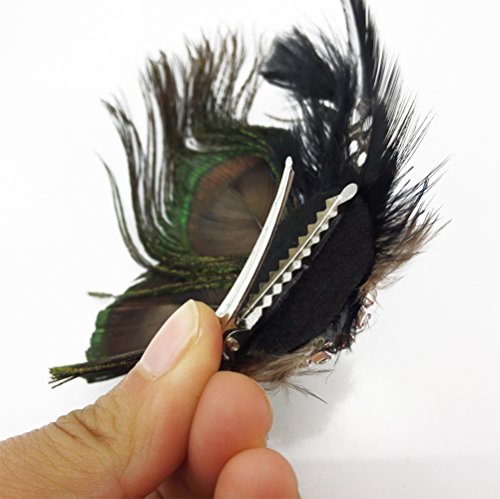 -. Feature : Perfect for Many occassions: wedding, party, holiday and even a great hair accessory for everyday wear. / Beautiful and stylish feather hair clip that makes a fashion statement / Back With attached alligator clip for secure placement / Material: Feathers & Rhinestones / Size:approx. 13.5*9cm/5.31*3.54"( ± 2cm, size may have a little error from different batch products, please check clearly before you buy)
