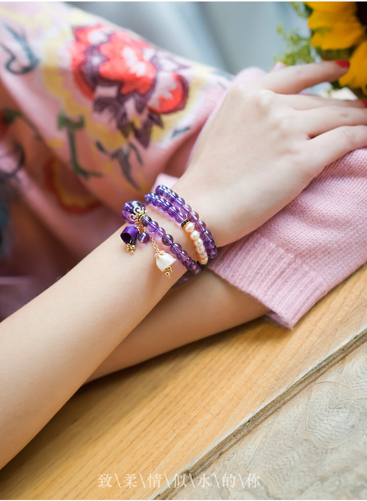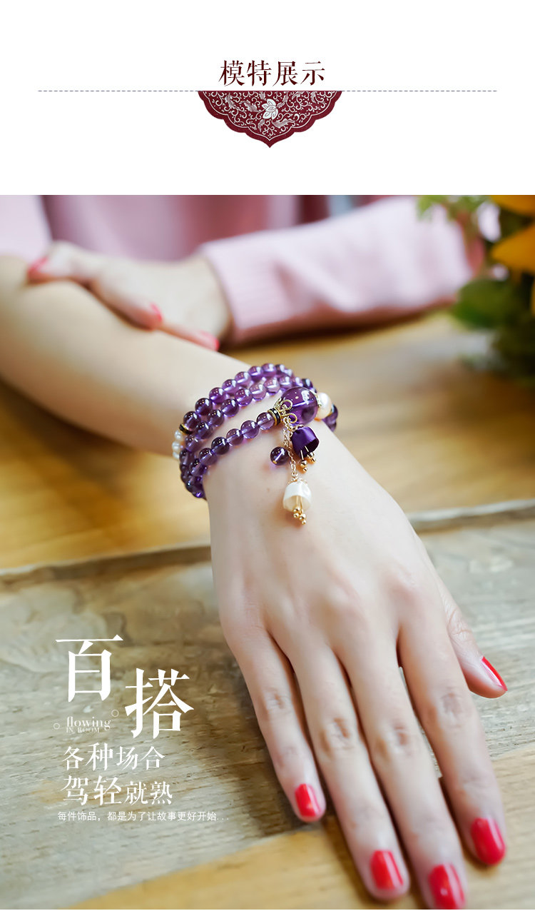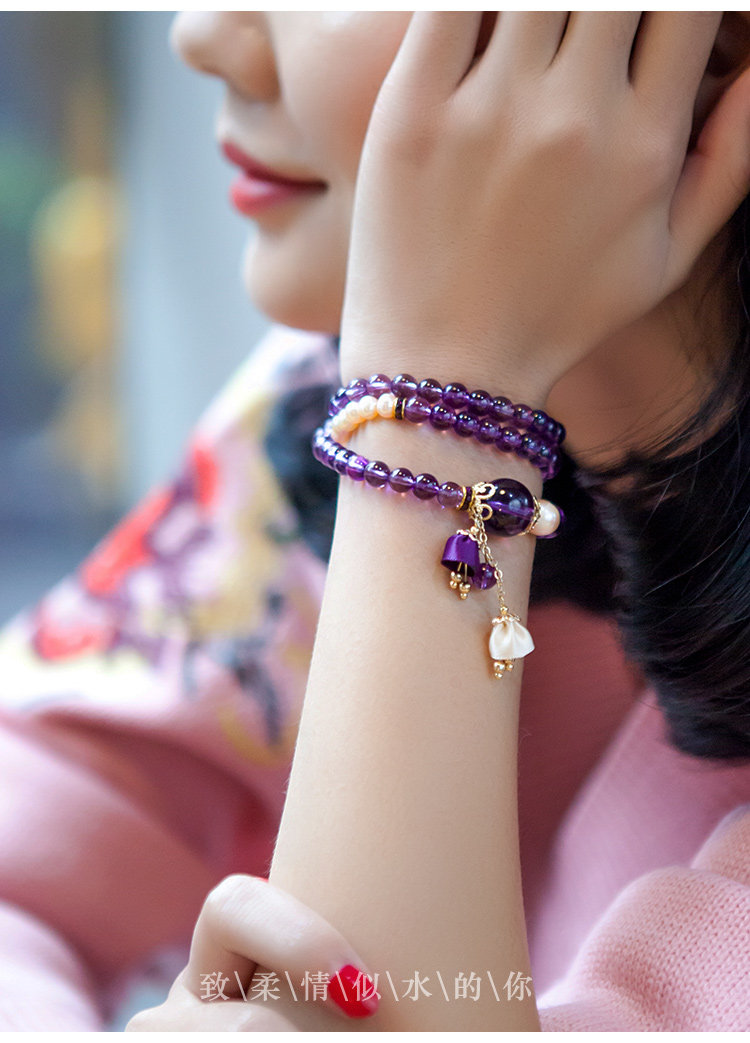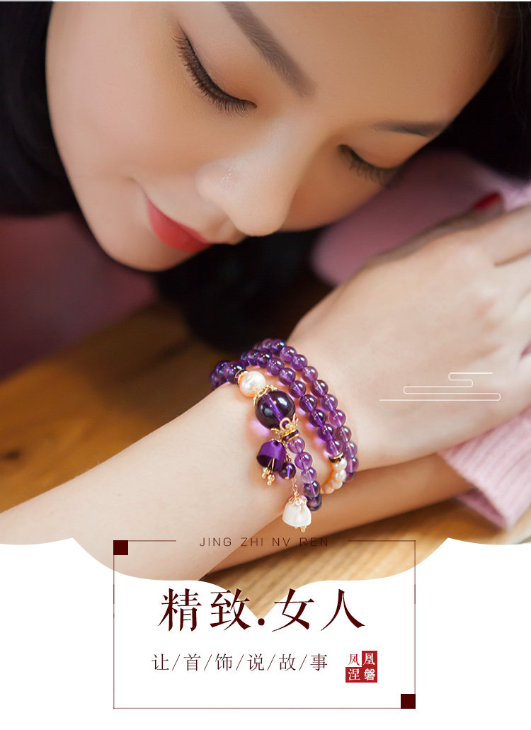 凤凰涅磐多层紫水晶手链珍珠多圈吊坠情人节礼物学生简约民族风女