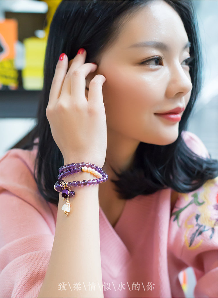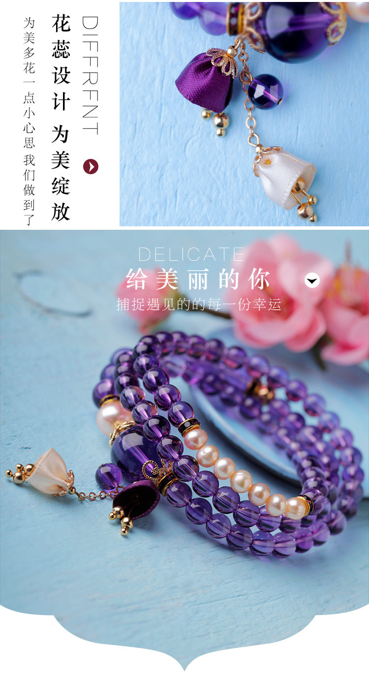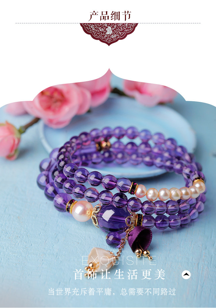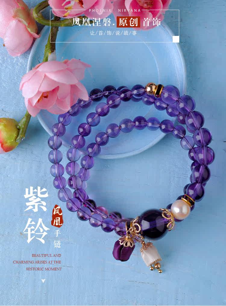 凤凰涅磐多层紫水晶手链珍珠多圈吊坠情人节礼物学生简约民族风女