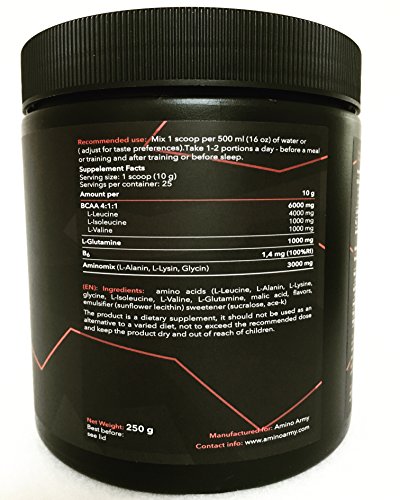 -. Feature : BUILD MUSCLE FASTER: Because BCAAs stimulate protein synthesis, you'll add on muscle more quickly and efficiently, all while reducing muscle fatigue and increasing the speed that you pack on muscle. That means you'll see results faster / RECOVER FASTER: BCAAs have been shown to help your muscles recover faster, which means that they rebuild and show results more quickly, AND you won't feel as sore / BURN FAT FASTER - GUARANTEED: Branched Chain Amino Acids (BCAA) help your body burn fat faster while protecting your muscles. That means that your abs will show, your biceps will look bigger, and you'll look and feel more *ripped* than before. You'll look better with your shirt off, because you'll keep your muscle tone while burning more fat / A TOTAL OF 10 000 mg of amino acids per serving, MOST POTENT BCAA FORMULA: Not all BCAAs are created equally. Amino Army offers a potent formulation of pure BCAAs / ADD MUSCLE OR YOUR MONEY BACK: True to our pledge of having the best supplements available, you are protected by our 100% Money Back Guarantee. If, for whatever reason, you are not completely thrilled with your purchase of Amino Army BCAA, return the empty bottles for a no hassle refund