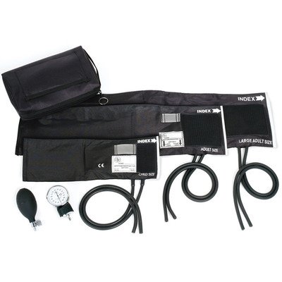 -. Feature : A versatile combination set featuring three interchangeable cuff sizes / Features: Latex free, nylon cuff, Index and Range Markings, artery indicator mark, owner ID label, gauge holder, standard inflation bulb and air release valve, 6"x9" nylon carry case / Comes with pediatric, adult and large adult / Cuff Ranges: Pediatric 7.25"-10.5", Adult 10"-16", Large Adult 13.5"-20" / Warranty: Lifetime Calibration