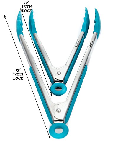 Studio : Useful. Publisher : Useful. Binding : Kitchen Product Description DESIGNED TO LAST WITH ROBUST STEEL PREMIUM GRADE SILICONE WITH A STURDY SMOOTH-GLIDE LOCKING ACTION LOOKING FOR HIGH QUALITY TONGS FOR YOUR BBQ AND COOKING? Useful. Silcone BBQ Kitchen Tongs are heat resistant to 450°F, with scalloped silicone tips built to grip effectively ? 1 x 9-Inch Tongs: 9" Handles (10" including lock) ? 1 x 12-Inch Tongs: 12" Handles (13" including lock) ? Designed with long-lasting, robust steel and premium grade silicone with a sturdy smooth-glide locking action ? Stain and odor resistant, with hygienic silicone scalloped heads moulded onto steel heads ensuring they do not come apart or allow bacteria to grow ?Dishwasher Safe 0