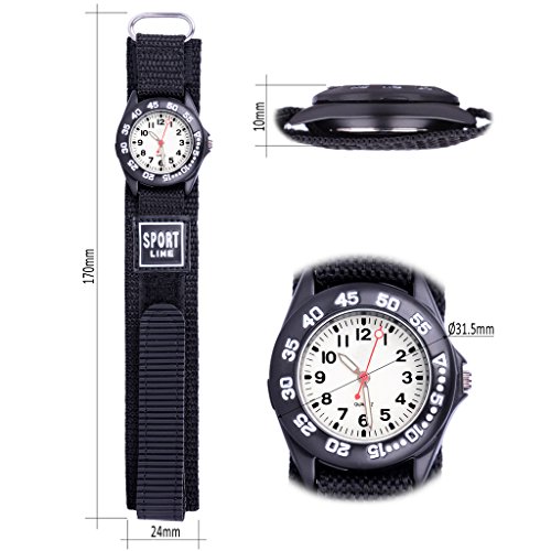 This is a simple design kids army military watch with clear hour and minute figures, has Military Time Numbers and Sliding Frame, which can help your kids learn to read time easily and lap-timer function.