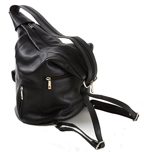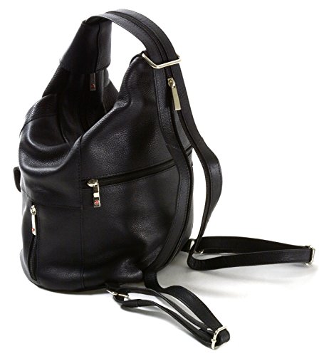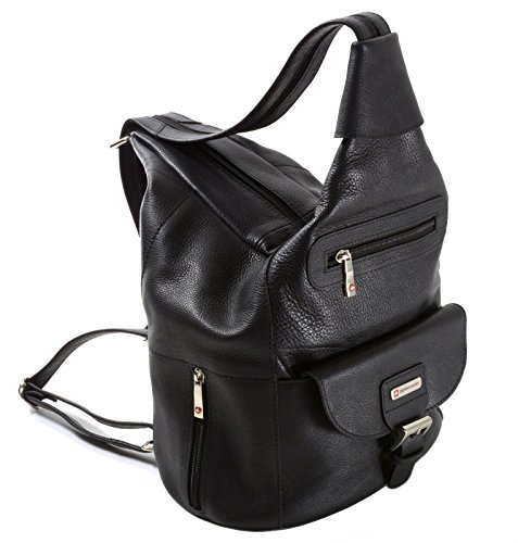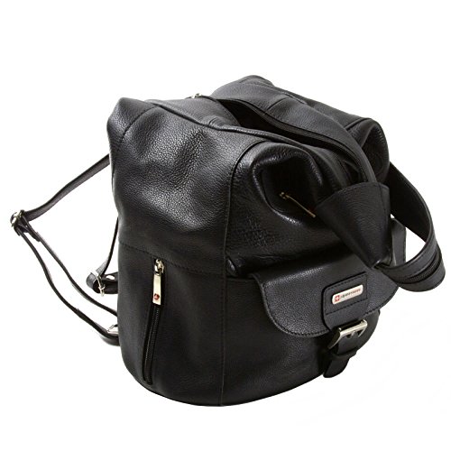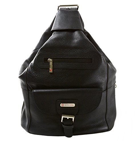 Genuine Leather Backpack Purses By Alpine Swiss Arnon Measures: 14"L x 8.5"W (bottom and 2.5"W top) x 5"D (side) Bottom Measures: 7" x 9.5" Strap Width Measures 2" Zipped (Purse) and 1" each Unzipped (Backpack) Strap Length Measures 28" to 39" Front Snap Pocket Measures 8.5"W x 5"H Multiple Zipper Pockets including 1 Main, 1 Inside, 1 Front, 1 Back, and 2 Side Main Zipper Measures 12"L Wear as a backpack, sling purse, or shoulder bag Enco Measures: 13"L x 10"W (bottom and x 7.5"W top) x 5"W (side) Bottom Measures: 8" x 11" Strap Width Measures 1"W each Strap Length Measures 11" to 35" Front Pocket Measures 8"L x 6.5"W Front Snap Closure Strap through Front Flap Main Pocket with Dual Side Snap Closure 1 Inside and 1 Back Zipper Pocket Top Handle for Easy Carry or Storage Nore Measures: 13"L x 11"W x 4"D Bottom Measures: 5" x 11" Strap Width Measures 1"W each Strap Length Measures 11" to 35" Front Zipper Pocket Measures: 7"W x 9"L Front Pocket includes Phone Pouch measuring 6"H x 3.5" W and 6 Credit Card Slots Main Pocket with Dual Side Snap Closure Front Flap Snap Closure Large Back Zipper Pocket Top Handle for Easy Carry or Storage Tiber Measures: 13"L x 9"W x 4.5"D Bottom Measures: 6" x 9.5" Strap Width Measures 1"W each Strap Length Measures 10" to 29" Front Zipper Pocket Measures: 7"W x 4"L Front Pocket includes Inside Zipper Pocket and 3 Credit Card Slots Front Flap Snap Closure with Buckle Design Main Pocket with Inside Zipper Pocket and Leather Drawstring Large Back Zipper Pocket Top Handle for Easy Carry or Storage Gila 7 Section Organizer Including Zipper and Inside Pocket 1 Year Manufacturer's Warranty Against Material, Parts or Workmanship Defects - Our Bags are Made to Last! Gold Metal Hardware Genuine Luxurious Verona Leather Measures Approximately 8.5" x 9.5" x 3" Adjustable Shoulder Strap Approximately 29" to 34", 1" Wide Straps Front Flap with Secure Snap, Top Handle for Easy Carry FronFeature