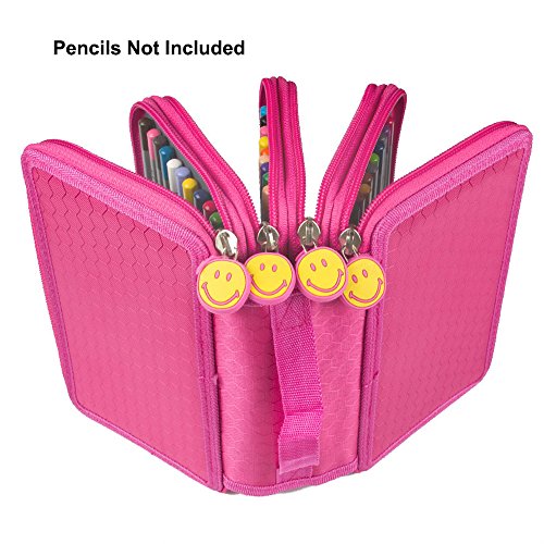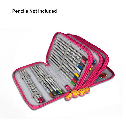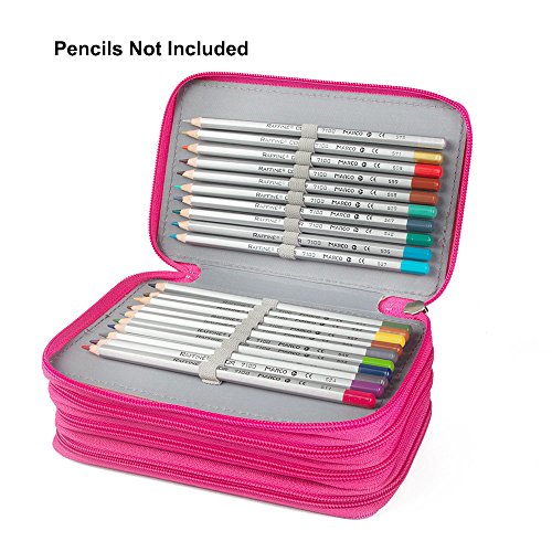 Multi-layer Pencil Case, STARVAST Handy Wareable Oxford Pencil Bag 72 Slots Portable Pencil Organizer with Strong Zipper and Handle-Pink(Pencil Not Included)