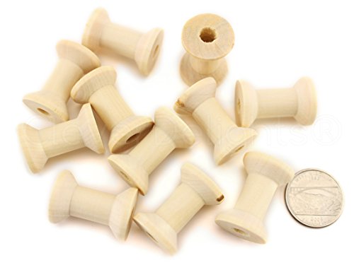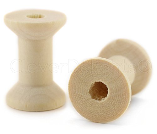 25 Pack - CleverDelights 1 1/8" x 3/4" Wood Spools - Unfinished Wooden Spools - Thread Bobbin Cord Wire Sewing