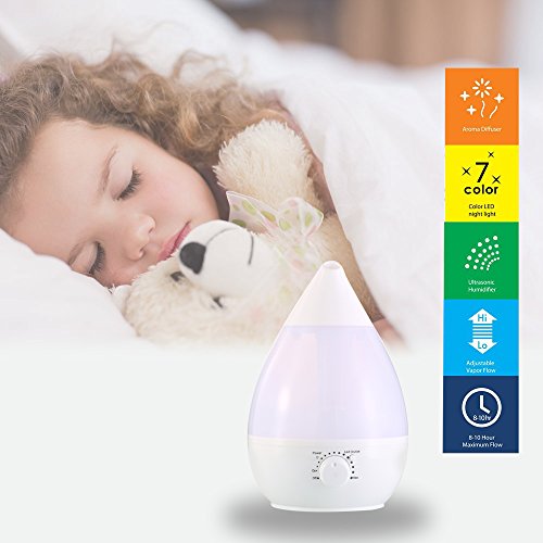 Built-in 7 color LED night light (Purple, Indigo, Blue, Green, Yellow, Orange, Red). Set your favorite color or select color rotation, this will make it the perfect humidifier for your bedroom.