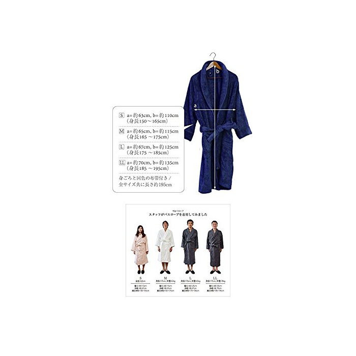 일본의 고급 호텔에서 실제로 사용 되고 있는 버스 로브와 같은 규격으로 만들어져 있습니다. 타올의 산지,이마바리산의 버스 로브입니다.
