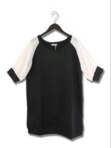 -. Title : 裏毛x無地シフォン袖切り替えプルオーバー F ブラック