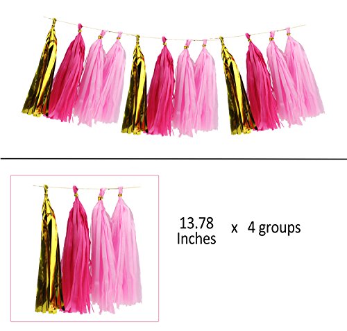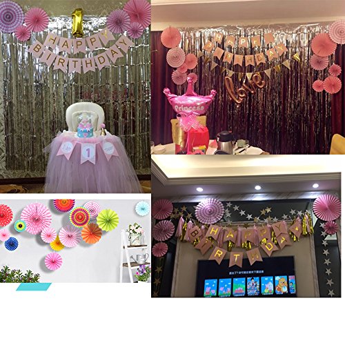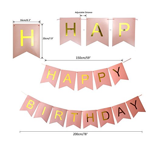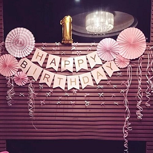 -. Title : Sonnis HAPPY BIRTHDAY BANNER Pink Gold Foiled Bunting Flag Garland,6pcs Paper Fans, Pack with 12 paper Tassels for DIY Happy Birthday Decorations 19pcs