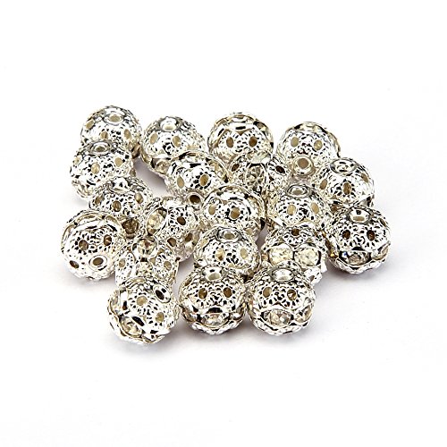 BRCbeads Top Quality 8mm CLEAR CRYSTAL Color Metal Style #1 CRYSTAL RHINESTONE BALL Shape SPACER BEADS Silver Plated 20pcs Per Bag For Jewelry Making
