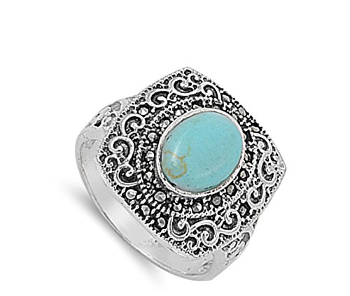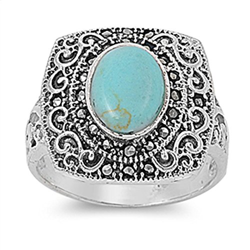 - Title : Vintage Filigree Turquoise Marcasite Ring .925 Sterling Silver Band Size 10 (RNG13969-10)