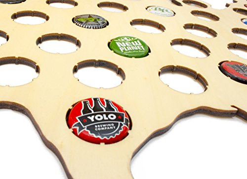 INGENIOUS DESIGN: Holds 78 beer bottle caps snuggly. Simply push the cap from the back and display your favorite brews.