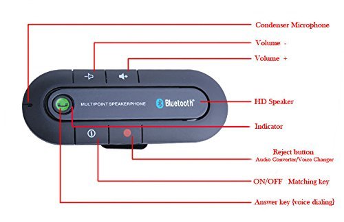 Findway® Bluetooth Speakerphone Portable Multipoint Wireless Hands-Free Bluetooth Sun Visor In-Car Speakerphone Car Kit for IPhone, iPad , and Any Bluetooth Smartphone-iPhone, Android,Blackberry,etc Black