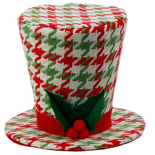RAZ Imports - Holly And Houndstooth - 5" Red Green & White Top Hat Decoration