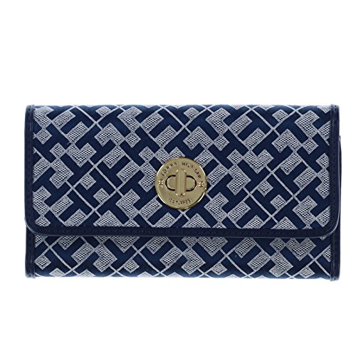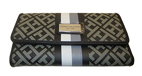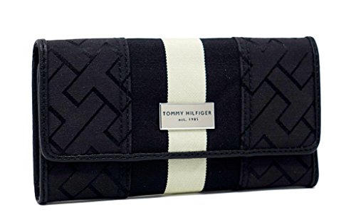 Travel in style with this deluxe Tommy Hilfiger Signature Continental Logo Wallet, complete with a premium fabric lining and the unique silver plated logo. Tommy Hilfiger uses only the finest quality custom material in crafting their handbags. Each piece slight texture and color variation to give their product its own unique character over time. Enjoy the classic styling and unique design of your Tommy Hilfiger wallet! Pair it with the many style of totes and shoppers available!Feature