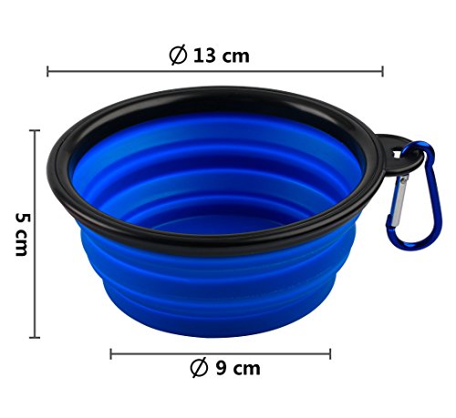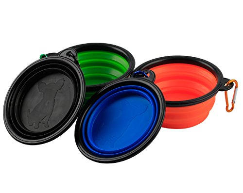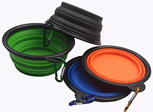 MDW Collapsible Travel Silicone Portable Pet Food Water Bowl with Carabiner--BPA Free(black orange blue and green)