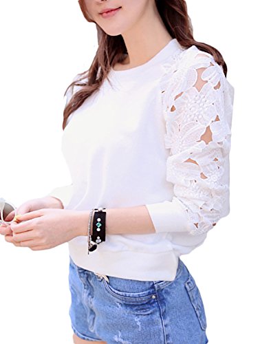 -. Title : Azrte(アズルテ) トレーナー カットソー レディース ファッション 花柄 レース 袖 フリーサイズ 春 夏 トップス 長袖 Tシャツ
