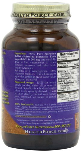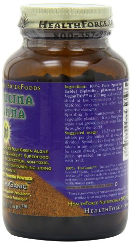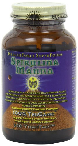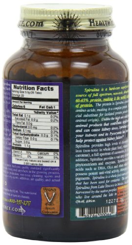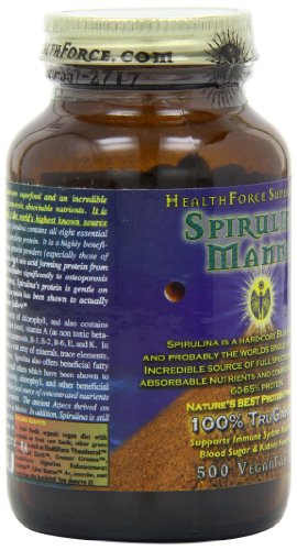 Spirulina is a hard-core superfood and an incredible source of full spectrum, non-toxic, absorbable nutrients. It is 60-65% protein, making it the world's highest known source of protein.The protein in Spirulina contains all eight essential amino acids, making it a complete protein. It is a highly beneficial substituted for isolated protein powders (especially those of animal origin). Unlike the high uric forming protein from animal products that contributes significantly to osteoporosis and can cause kidney stress, Spirulina's protein is gentle on your kidneys and its Pycocyanin has been shown to actually help protect against kidney failure. Spirulina provides high levels of chlorophyll, and also contains iron (non-toxic in whole plant form), vitamin A (as non toxic beta-carotene), a full spectrum of carotenoids, B-1, B-2, B-6, E, and K. In addition, Spirulina provides a vast array of minerals, trace elements, phytonutrients and enzymes. Spirulina also offers beneficial fatty acids such as DHA, GLA and others which have been shown to possess protein anti-viral activity, chlorophyll, and other beneficial pigments. Spirulina is a whole food source of concentrated nutrients that has been used for centuries. The ancient Aztecs thrived on Spirulina from Lake Texcoco in Mexico. In addition, Spirulina is still harvested by the native people who live around the lake in Chad, Africa. It has 300% more calcium than whole milk,2300% more iron than spinach, 3900% more beta carotene than carrot, 50-60% Protein, 375% more protein than tofu.Feature