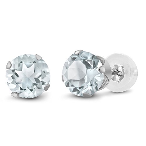 -. Title : 1.50 Ct Round 6mm Sky Blue Aquamarine 10K White Gold Stud Earrings