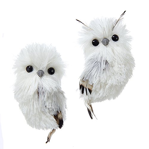 - These White and Silver Hanging Owl Ornaments are a charming addition to any holiday decor or Christmas tree. This assortment features 2 owls, one with horns and one without. Both have a soft plush design and feather accents on the wings and tail.