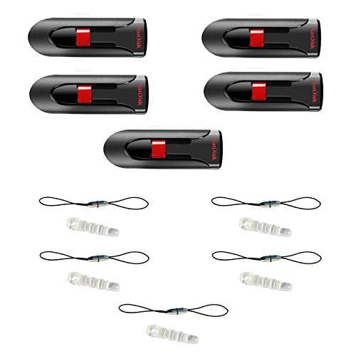 5 X SanDisk SDCZ60-016G 16GB 2.0 Flash Cruzer Glide USB Drive with Detachable Lanyard (5pcs) and Dust Plug (5pcs)