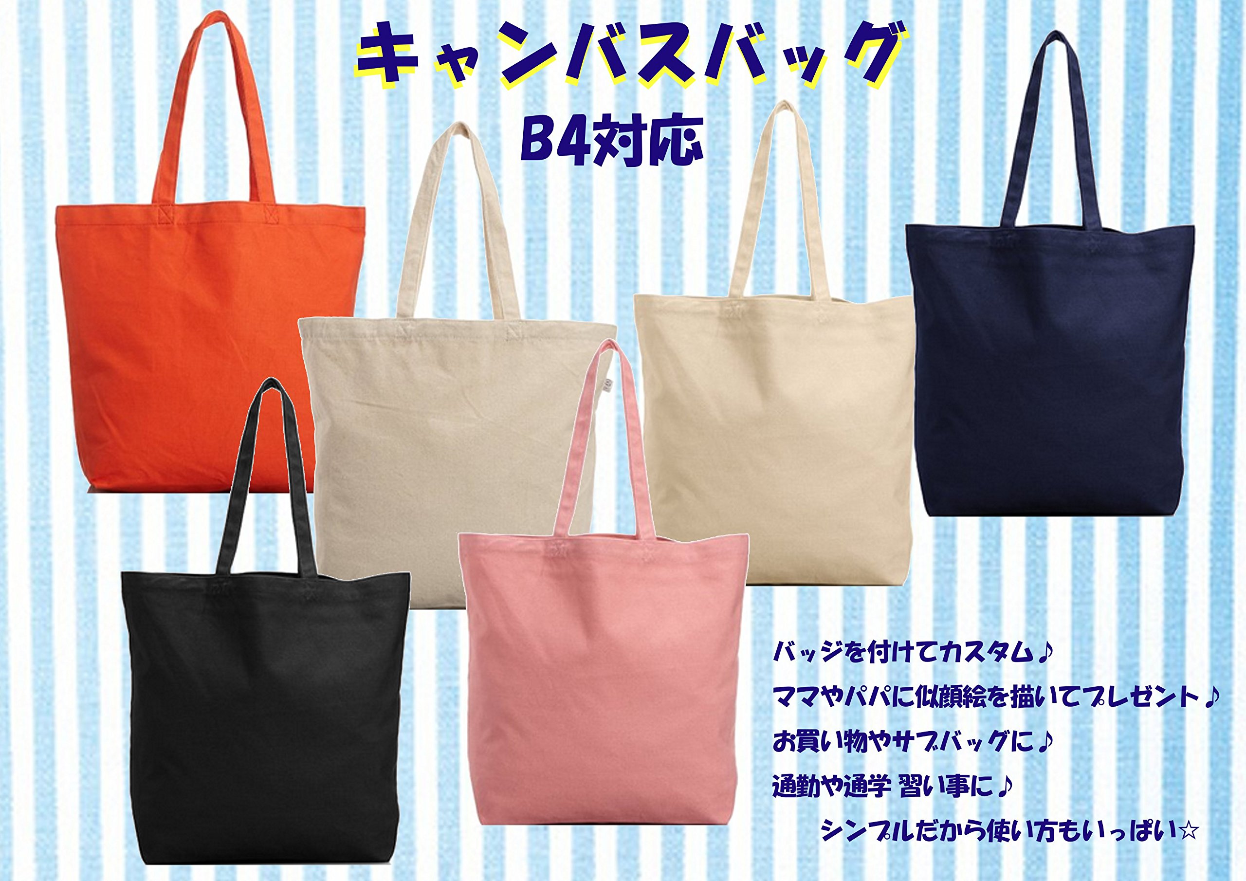 Since it is a simple design tote bag, it is a bag that makes it easy to arrange to your liking, such as attaching patches and buttons, drawing illustrations, adding patchworks, and decorating.