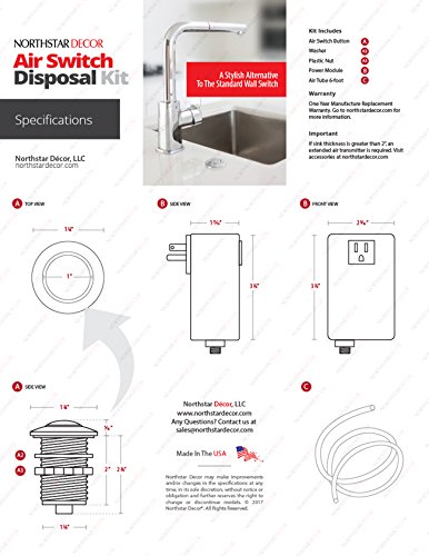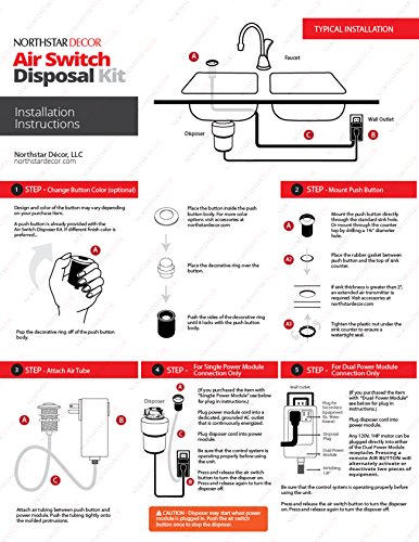 NORTHSTAR DECOR AS010 Garbage Disposal Single Outlet Air Switch with White, Biscuit, Bone Beige, and Almond Buttons.