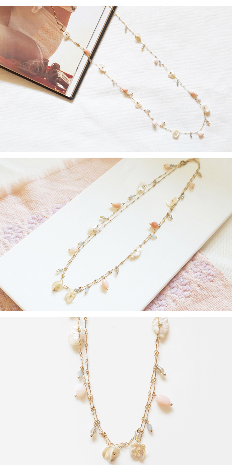 - 다양한 모양의 원석이 포인트인 핸드메이드 베리원석 롱 목걸이입니다.^^ 한줄로도 길게 착용하실 수 있구요. 두줄로 짧게 연출하실 수도 있어 활용도가 아주 높은 제품이에요. 라땅뜨 자체제작 제품이구요. 여리여리하고 여성스런 느낌으로 원피스나 블라우스 위에 레이어드 하시면 좋아요.^^ Product info. · 상품명 : 베리원석 롱 네크리스 · 사이즈 : 총 길이 86cm (두줄착용시 44cm) · 소재 : 신주(Brass), 원석 · 여성스럽고 고급스런 스타일을 연출하실 수 있는 롱 목걸이입니다. · 두줄로 착용하시면 좀 더 화려한 스타일을 연출하실 수 있습니다. · 제조국 : 한국 · 제조사 : 라땅뜨 자체제작(O)/ 협력업체 · 쥬얼리 제품 특성상 착용흔적(스크래치, 부품분리)이 있을 경우 교환및 환불이 어려우므로 이점 양해 부탁드립니다. · 모니터에 따라 색상이 조금씩 달라 보일수 있습니다. 이는 하자의 사유가 되지 않습니다. |