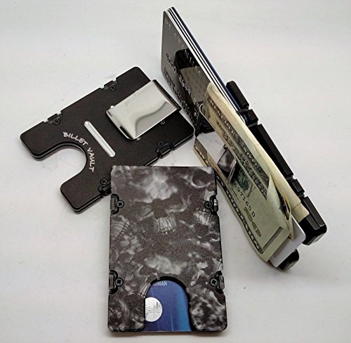 Binding : Apparel Product Description The badass BilletVault Aluminum Wallet has been minimally machined from two pieces of solid billet aluminum. Aluminum is anodized with design laser engraved. Carry only what you need, with its size easily adjusting from your daily ID and bank card, to up to twelve cards for traveling or networking events. With a money clip included for carrying your currency, and 4 extra O-rings, it's a convenient carryall no matter what you want with you. The lightweight 81 gram construction of this wallet lends itself to utter comfort. The slim front pocket profile helps alleviate lower back pain, while the tough construction also keeps your information secure by blocking RFID devices used to wirelessly steal your identity or credit card information. You're sure to be safe as well as stylish with the beautiful BilletVault Aluminum Wallet. Product dimensions are 2 3/8 x 3 1/2 x 1/4 completely empty. This wallet will never wear out. 0